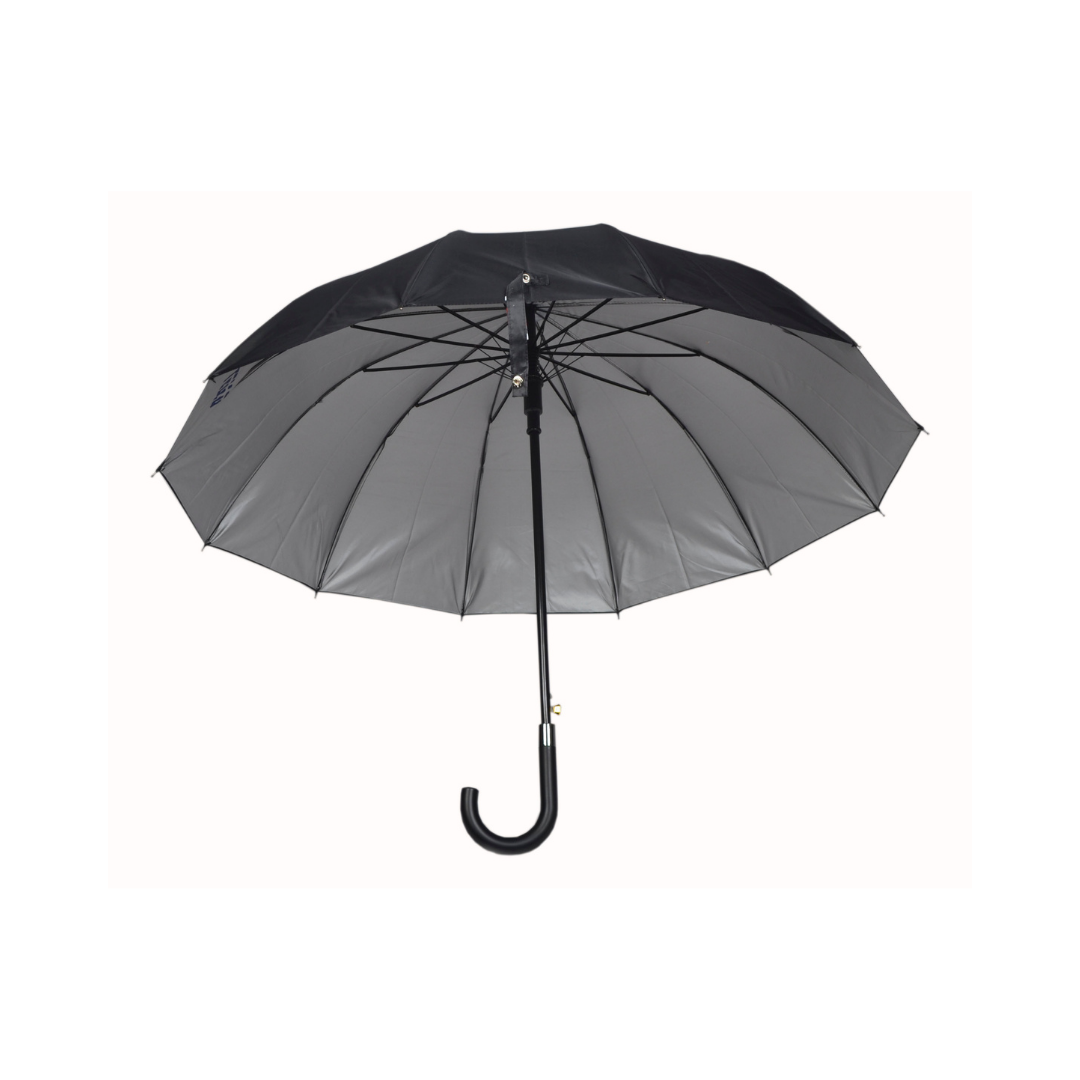 This full-sized umbrella features a wide canopy made from premium silver-coated Polyester, offering excellent UV protection and rain resistance. The reinforced steel ribs and sturdy central shaft make it strong enough to withstand gusty winds, while the ergonomic handle ensures a firm and comfortable grip even during heavy showers.